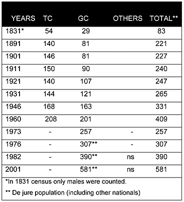 As explained above, until 1964 the village had always been mixed. In the Ottoman census of 1831, Muslims (Turkish Cypriots) constituted the majority of the population at 65%. In 1891 their percentage decreased to 63%., and throughout the twentieth century, while the Greek Cypriot population increased steadily, the Turkish Cypriot population fluctuated and eventually stagnated. In 1960, the Turkish Cypriot share of the population had declined to 50.8%.