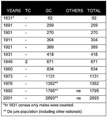 As can be seen from the chart above, since the 19th century the village has been solely inhabited by Greek Cypriots. During the 20th century, the village’s population showed an upward trend in its growth rate. Agia Napa’s population steadily increased from 259 in 1891 to 834 in 1960. The last recorded census, in 2001, puts the population at 2,693.