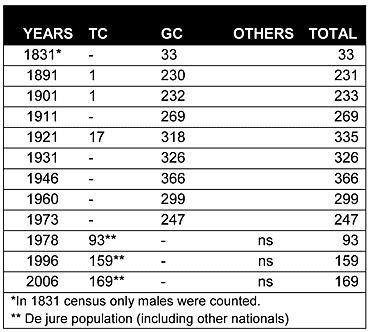 As can be seen from the chart above, Greek Cypriots constituted the only inhabitants of the village, apart from a small number of Turkish Cypriots who appear in the records at the beginning of the 20th century. Although the population of the village showed a slight increase during the first quarter of the 20th century (233 in 1901 to 366 in 1946), a significant drop was recorded in 1960, when the population fell to 299.