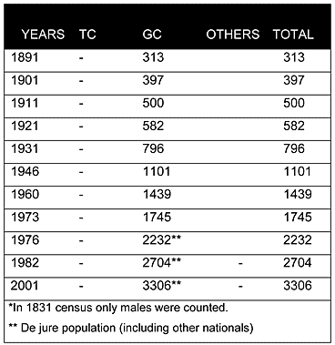Throughout the British period the village was solely inhabited by Greek Cypriots, and the population of the village steadily increased from 313 in 1891 to 1,439 in 1960. The last recorded census of 2001 puts the population at 3,306.