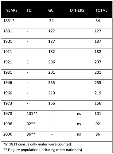 As can be seen from the chart above, in the Ottoman census of 1831, Christians (Greek Cypriots) constituted the only inhabitants of the village. Throughout the British period, the village was solely inhabited by Greek Cypriots. During the latter period the village’s population steadily increased from 137 in 1901 to 255 in 1960.