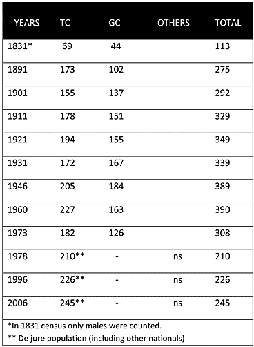 As can be seen from the chart above, in the Ottoman census of 1831, the village was a mixed village, with Muslims (Turkish Cypriots) constituting the majority. Throughout the British period the village continued to be a mixed village. During the first half of the twentieth century, the village’s population steadly increased from 292 in 1901 to 390 in 1960. All this time Turkish Cypriots constituted the majority in the village.