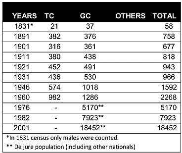 Currently the village is mainly inhabited by displaced Greek Cypriots from the north. According to Goodwin many of the first displaced persons who settled in the village came from Argaki(020) and Kato Zodeia(047) villages in the Morphou area of north Cyprus. Apart from the usage of Turkish Cypriot houses, many new houses were constructed for the displaced families. The last Cypriot census of 2001 put the total population at 18,452.